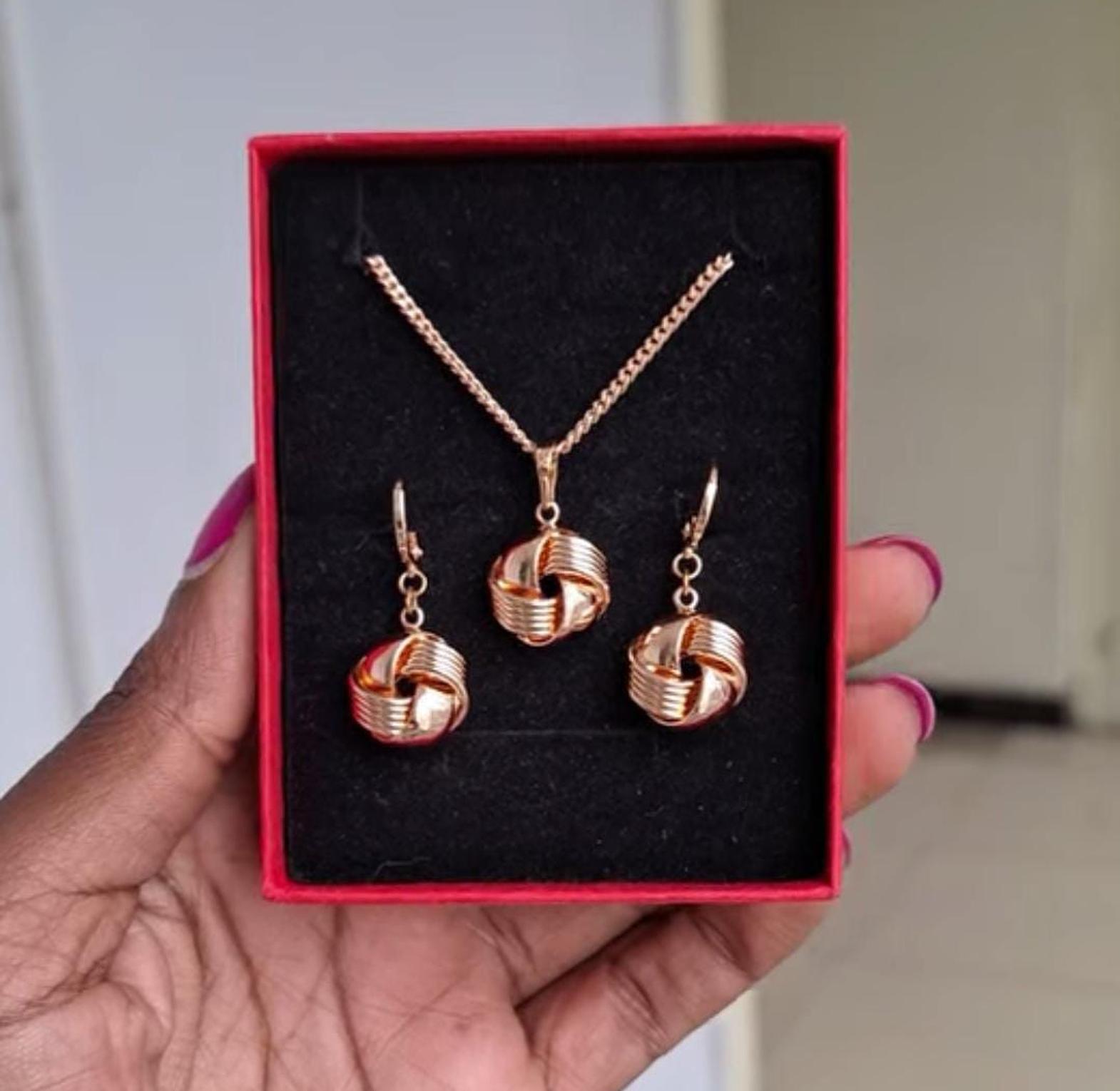 A hypoallergenic, non-tarnish, and anti-fading gold-coated necklace and earrings set, combining timeless beauty with enduring quality.