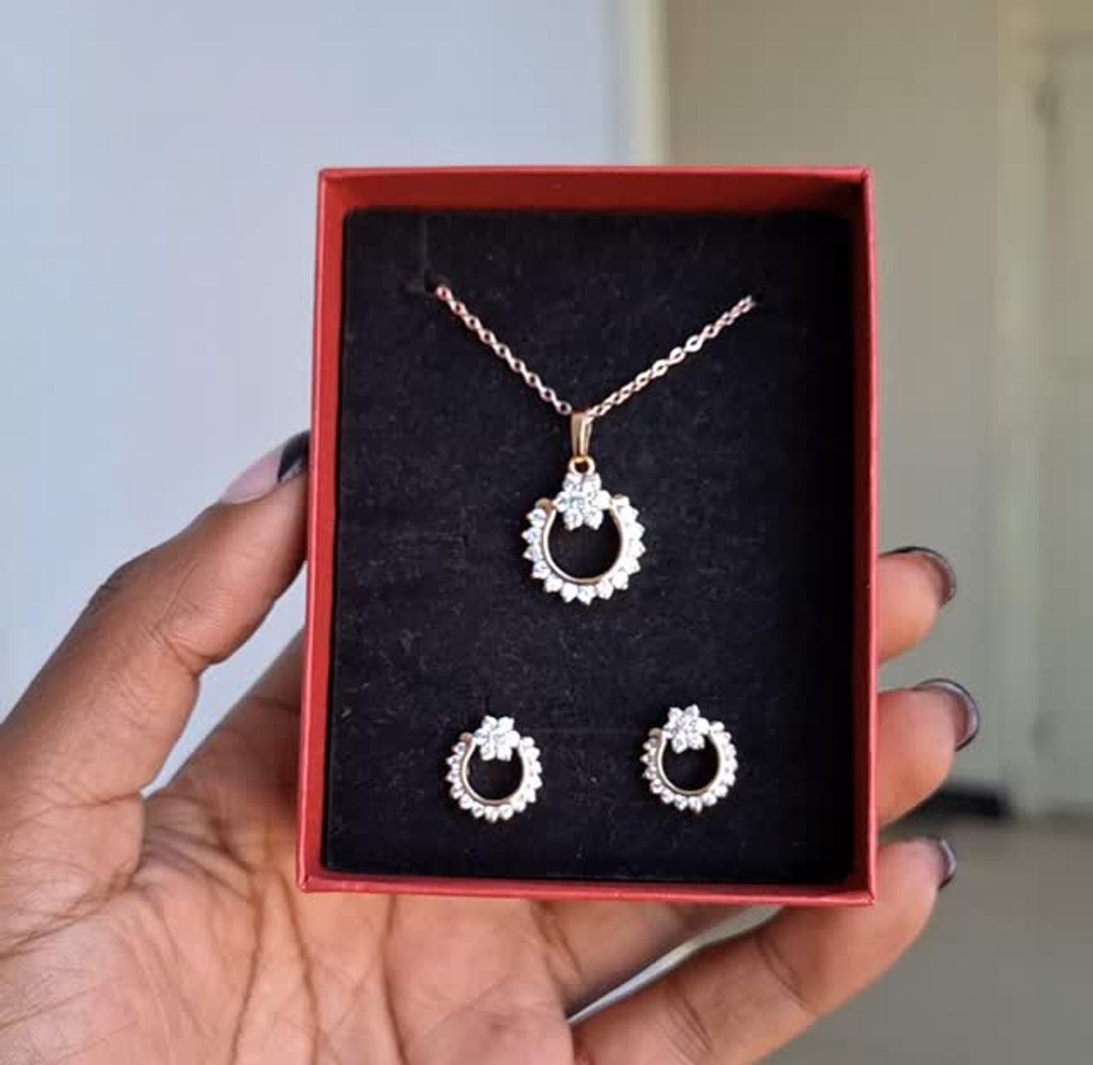 hypollargenic non tarnish and anti fading gold coated necklace and earrings set