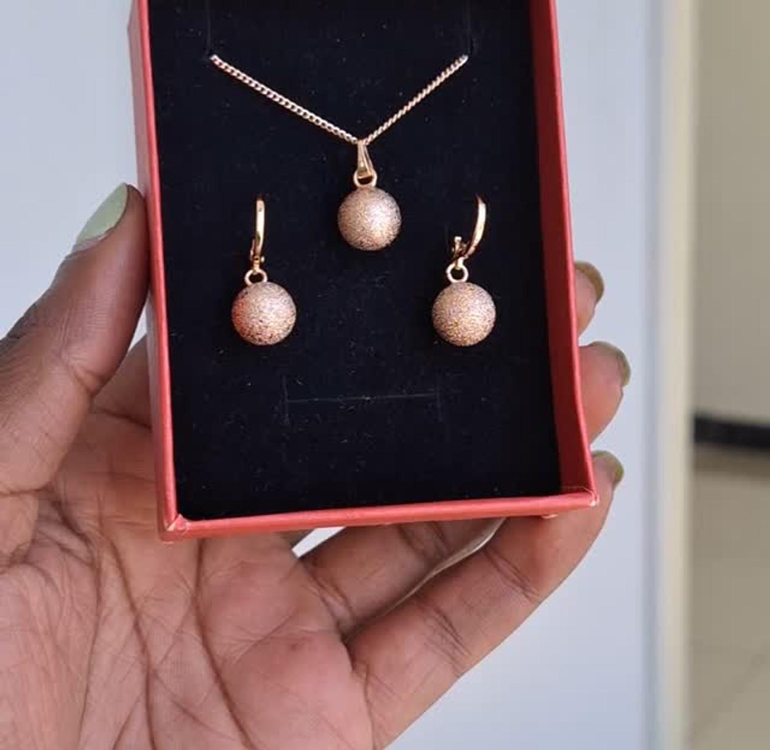 hypollargenic non tarnish and anti fading gold coated necklace and earrings set